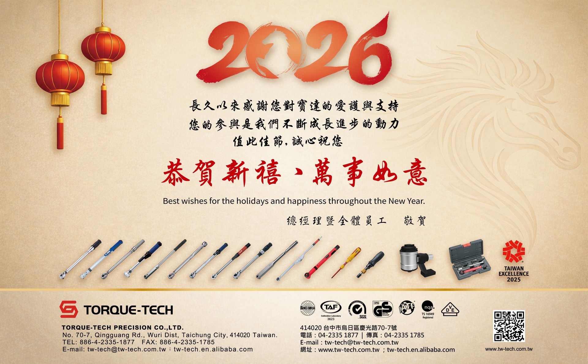 Torque-Tech will be closed for the Lunar New Year holiday from February. 13, 2026 to Feb. 22, 2026